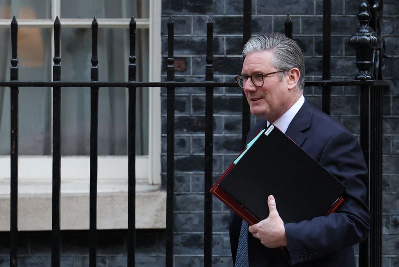 LONDON (Reuters) - British Prime Minister Keir Starmer said on Monday that his government's first reaction to higher tariffs imposed by U.S. President Donald Trump should not be to relax public borrowing rules.