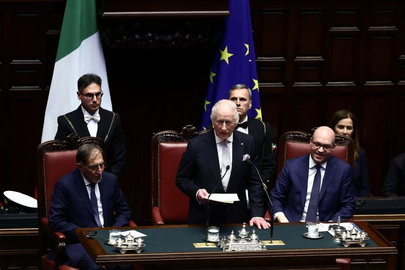 Charles, on the third day of his state visit to Italy with Queen Camilla, became the first British monarch to address a joint session of the Parliament in Rome, switching between English and Italian and drawing warm applause from lawmakers.