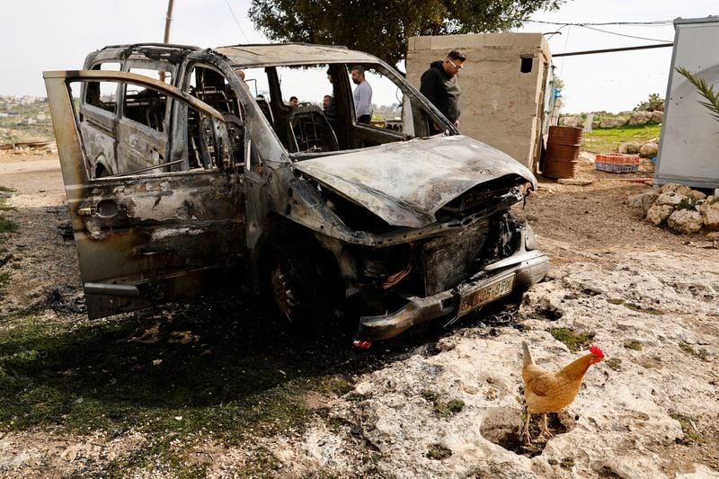 DUMA, West Bank (Reuters) - Israeli settlers attacked the Palestinian village of Khirbet al-Marjam in the occupied West Bank on Thursday night, burning three houses and a number of cars in the latest in a series of raids that have surged during the war in Gaza.