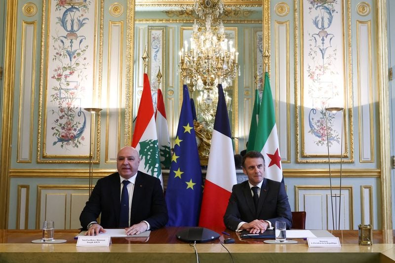 PARIS (Reuters) - Lebanese President Joseph Aoun began talks in Paris on Friday with French President Emmanuel Macron to discuss economic reforms and efforts to stabilise the country, as a fragile truce between Israel and Hezbollah increasingly comes under pressure.