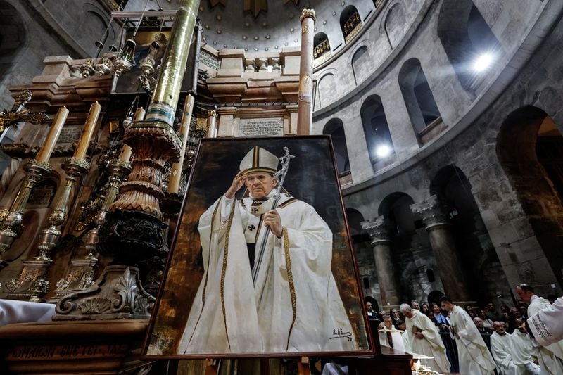 JERUSALEM (Reuters) - Christians from around the world prayed for Pope Francis at a solemn Mass on Wednesday at Jerusalem's centuries-old Church of the Holy Sepulchre following the pontiff's passing this week.
