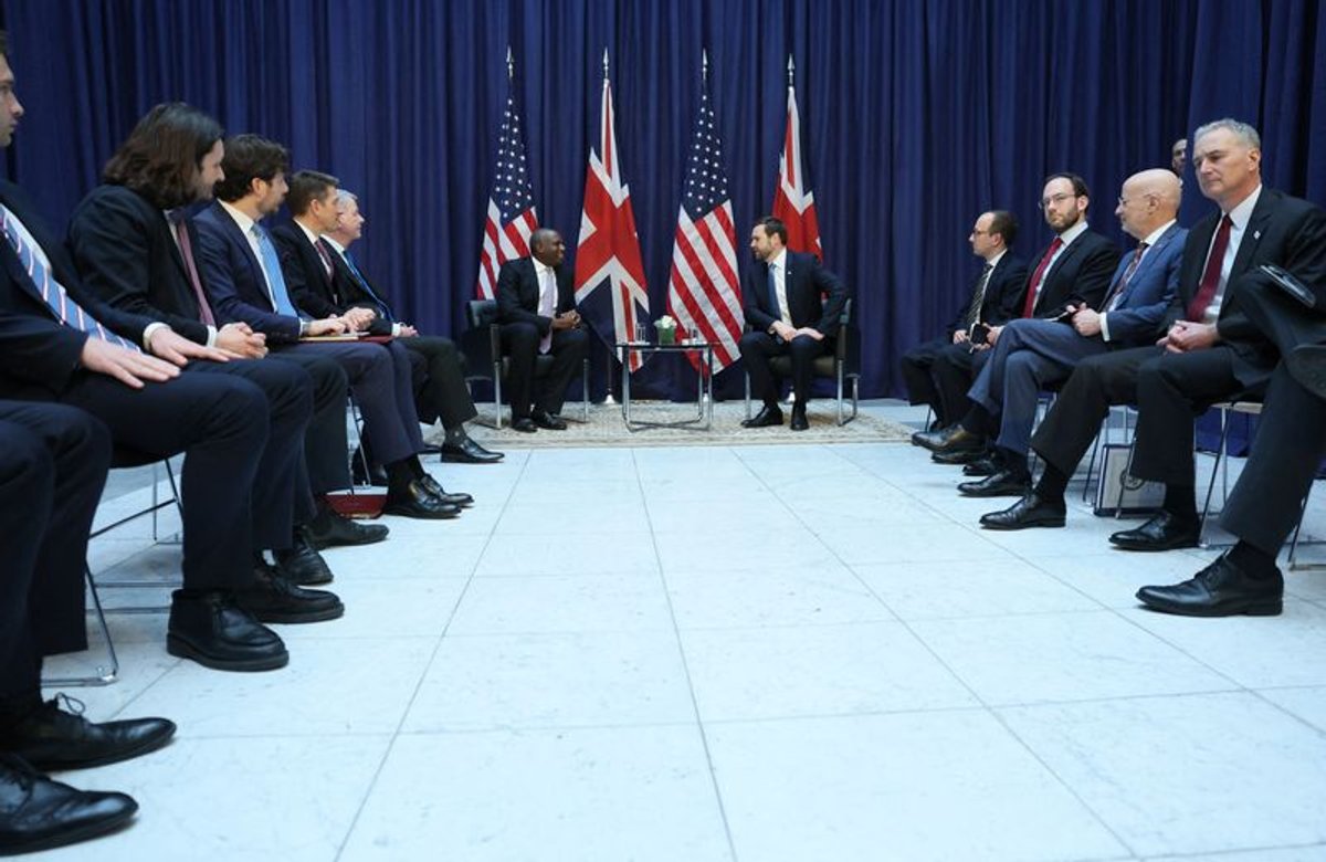 Key figures include UK foreign minister David Lammy, US Vice President JD Vance, and Ukrainian President Volodymyr Zelenskiy.