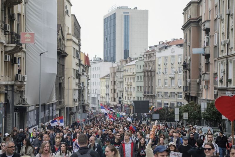 Thousands of others heard it too; the crowd packed into one of the Serbian capital's main boulevards parted abruptly, rushing to the sidewalks.