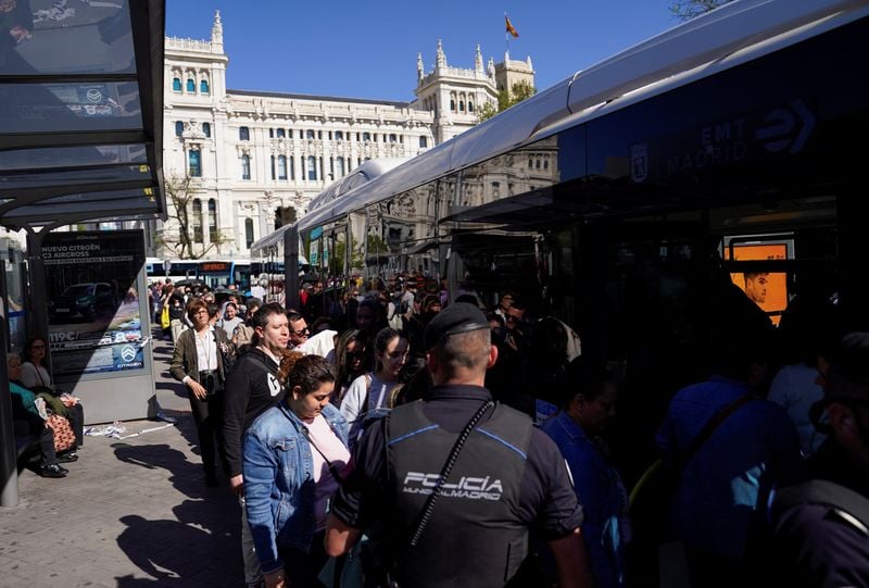 At Atocha, one of Madrid's main railway stations, passengers stood waiting on platforms with trains at a standstill. ATM screens were blank and police were trying to herd people towards central gathering points.