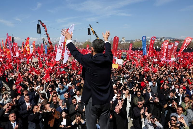 ANKARA (Reuters) - Turkey's main opposition leader on Sunday pledged further protests against the jailing of Mayor Ekrem Imamoglu, President Tayyip Erdogan's chief rival, aiming to sustain Turkey's biggest demonstrations in more than a decade.