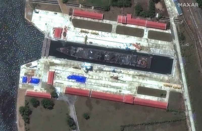 The destroyer that suffered a failed launch was moved to the graving dock at Rajin Dockyard, also known as Rajin Ship Repair Factory, by June 8, the Center for Strategic and International Studies (CSIS) said based on satellite imagery.