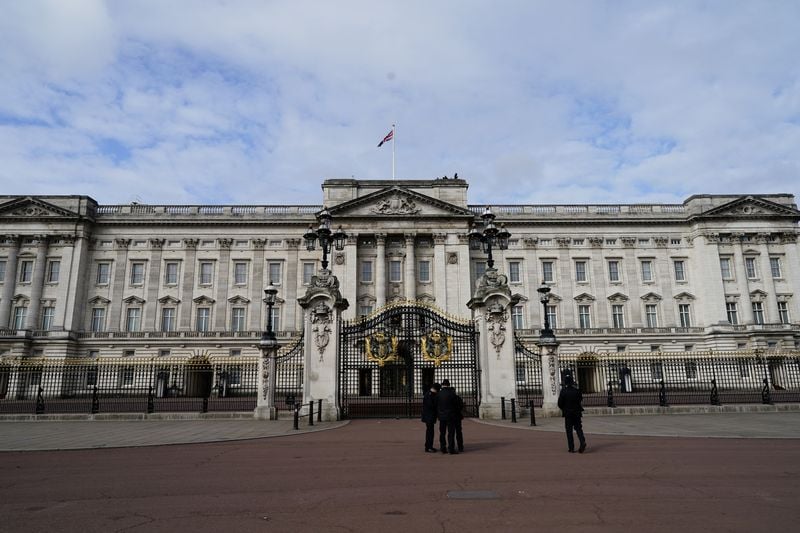 The royals, who waved to the onlookers gathered outside, were also due to host about 50 veterans and others who lived through the war for a tea party inside the palace.
