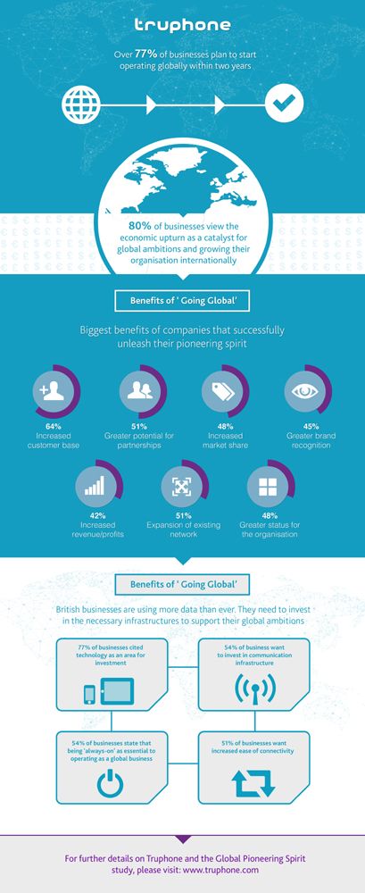 More than three quarters (77%) of British businesses, that class themselves as only operating domestically, are planning to expand into international markets within the next two years, according to the ‘Global Pioneering Spirit’ Survey conducted forTruphone, the first global mobile network without country borders.
