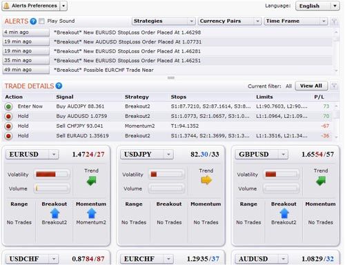 At the top of the screen, you have the alerts window that gives you access to a box where all the latest action by the six different strategies are displayed, including any recent trades, levels to take profits and losses, and updates on previous signals. The software will even alert you to new signals that are likely to hit soon.