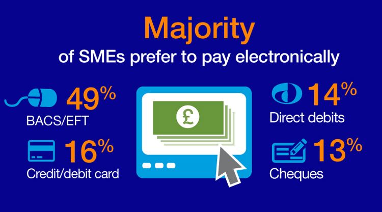 65% of SMEs say they have moved away from cheques in the past five years in favour of electronic payment methods.