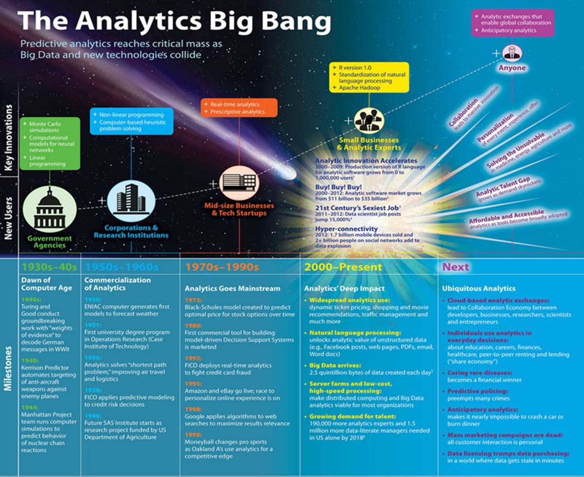 “The Analytics Big Bang” traces predictive analytics from the dawn of the computer age in the 1940s through the present day, and cites compelling evidence indicating that the analytics industry is at an inflection point: