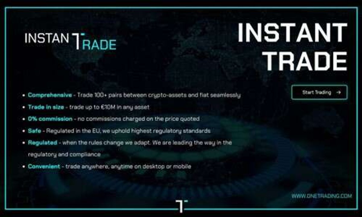 Instant Trade is a new product launched by One Trading that allows users to trade cryptocurrencies and fiat currencies seamlessly with zero commission fees.