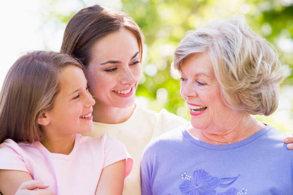 Grandmother with adult daughter and grandchild in park
