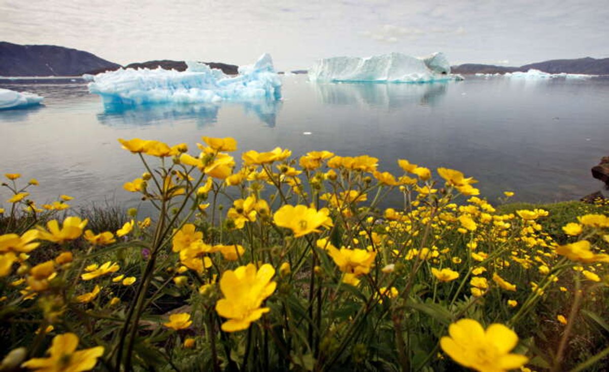 This image depicts vibrant wildflowers blooming on a hillside overlooking a fjord, reflecting the World Bank's commitment to annual reports on its climate action plan, emphasizing the importance of environmental sustainability in banking and finance.